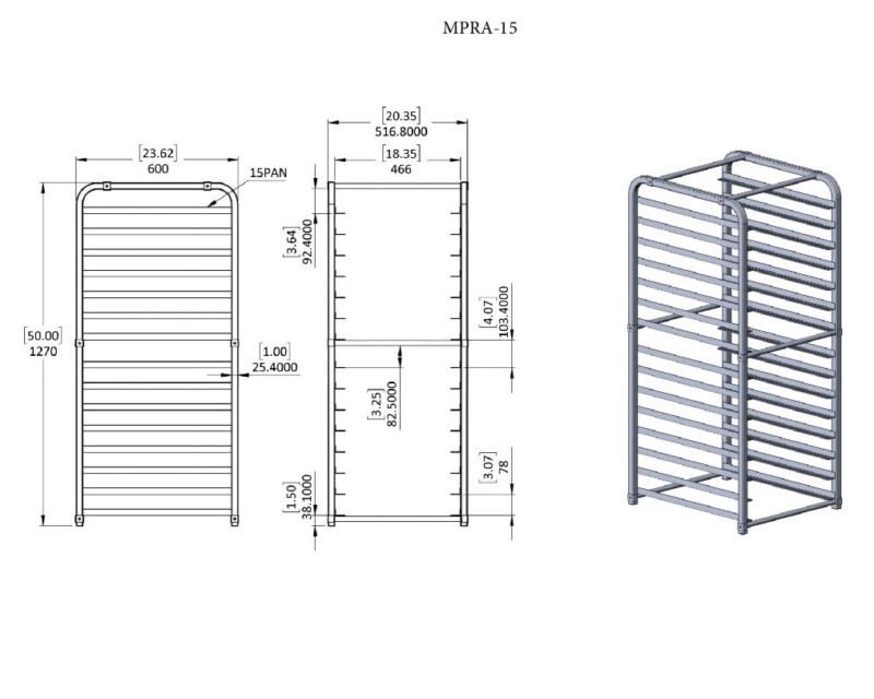 MPRA15Dimensions Ryan Jacobs Atosa USA MPRA-15, 15 Pan Stainless Steel End Load Reach-In Refrigerator Sheet Pan Rack – Full Size, Free Shipping