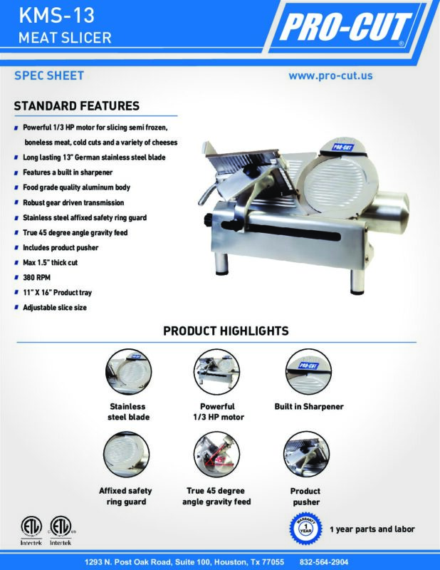 kms-13_meat_slicer_specsheet Ryan Jacobs Pro Cut KMS-13 13″ Blade, Meat Slicer, Gear Drive with Sharpening Attachment, Free Shipping