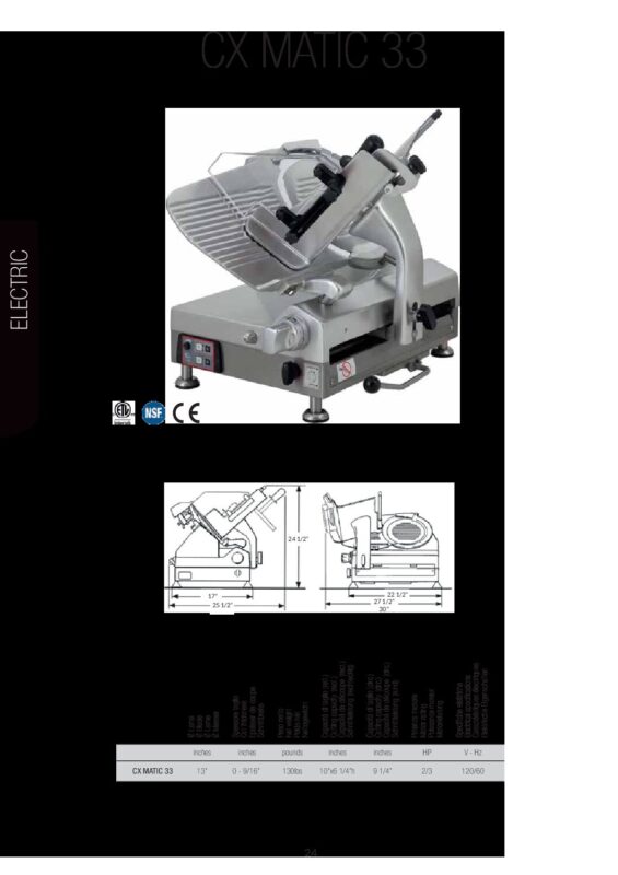 OMAS – CX Matic 33E_N CX Matic 33F_N – Data Sheet 2025 Ryan Jacobs Omas CX MATIC 33F/N Automatic Food Slicer, Gear Drive, w/ 13″ Blade, IP55, 2/3 hp, Free Shipping