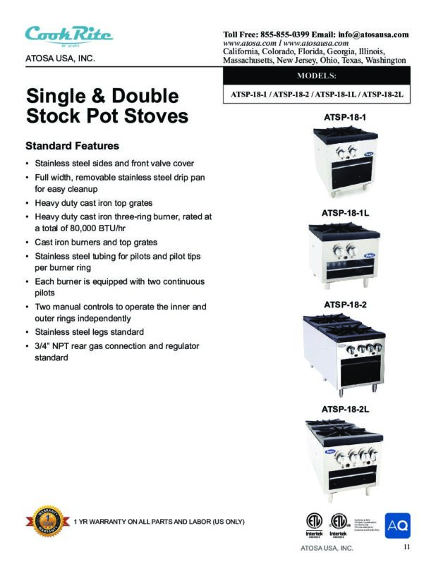 ATSP-18-1_18-2_18-1L_18-2L_specsheet2026 Ryan Jacobs Atosa ATSP-18-1 Single Gas Stock Pot Stove 18″ Wide x 21″ Deep, Standard Height 22.8″ LP gas or Nat. gas, Free Shipping