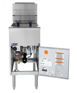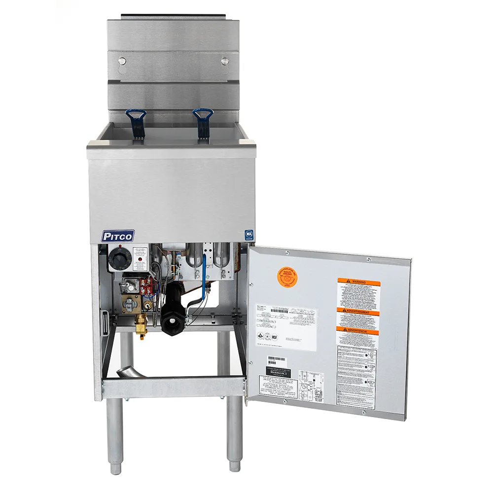 The Pitco SG14-S Solstice™ gas fryer cooks using 40 to 50 pounds of oil. Constructed of stainless steel, the fryer’s tank can withstand heavy use in a busy kitchen. The unit’s cabinet is built with a stainless steel front, door, and sides, which can all be quickly wiped clean at the end of the day. For durability, the cabinet door is mounted on a 316-inch hinge that prevents sagging.